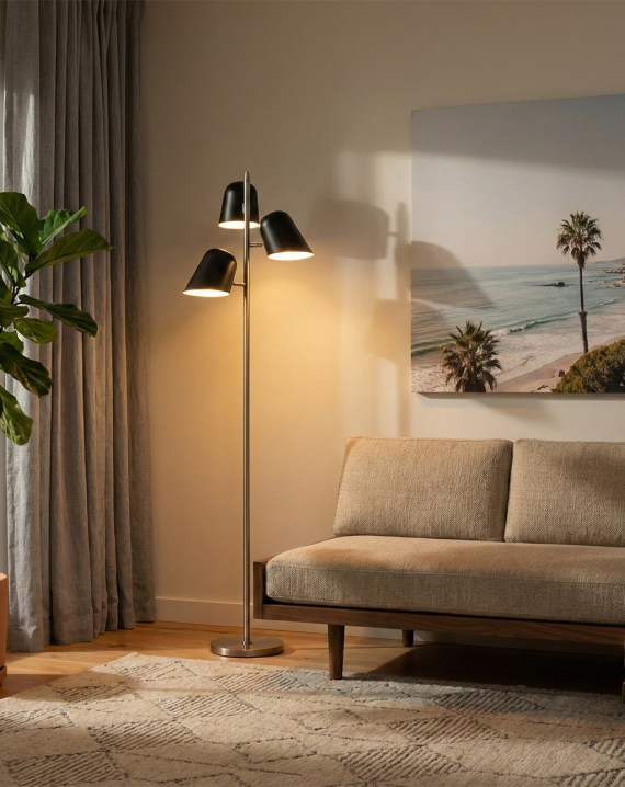 Mid-century modern interiors pair naturally with tripod floor lamps, arc lamps with shallow dome shades, and brass or warm gold finishes. The organic curves and warm metallic tones of mid-century design vocabulary are well served by floor lamps that reference the same era while incorporating modern LED technology.