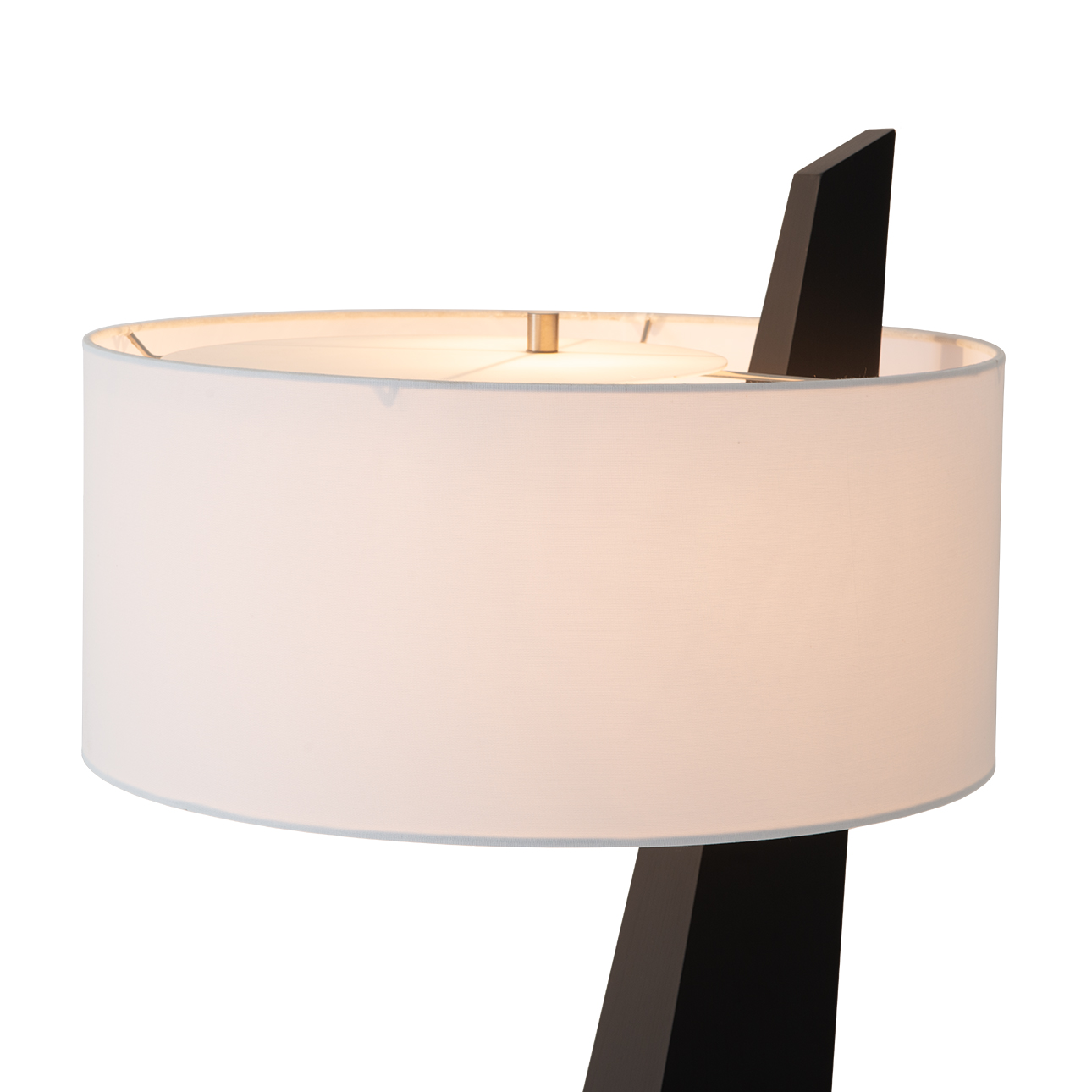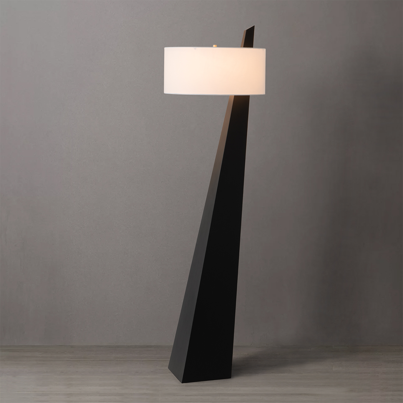 The Obelisk Floor Lamp from Nova of California is a geometrically precise visual delight. A round shade of white linen neatly surrounds a durable, wood body that is triangularly shaped and slanted at the summit for visual impact. It nicely blends rustic modern and transitional styles for versatility. This floor lamp is illuminated by an LED that brings a brilliant glow to your living space. An on/off inline switch offers convenient operation.