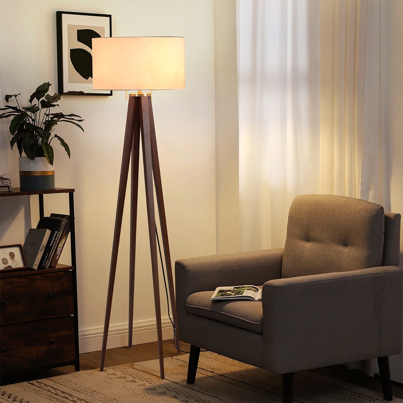 | features | The Quattro Floor Lamp features a distinctive design with four tapered legs in a dark walnut finish, adding a touch of architectural elegance to your space., Enhancing the lamp's appeal, the weathered brass accents provide a subtle contrast, creating a visual dialogue between warmth and sophistication., Topped with a pristine white linen shade, the Quattro Lamp diffuses the light softly, creating a warm and inviting ambiance in your room., The lamp's contemporary four-leg form is complemented by classic design elements, making it a versatile addition to various interior styles., Quattro is designed to provide ample illumination, making it an ideal choice for living rooms, bedrooms, or any space in need of stylish and functional lighting., The Quattro Lamp features a practical pull chains for easy on/off functionality, adding convenience to its elegant design., Smart switch compatible – effortlessly sync with Amazon Echo, Google Assistant, and Apple Home for easy & automated control., Contract grade: high quality materials, quality workmanship, built to last a lifetime & designed in Venice Beach, California., NOVA of California is the oldest light company in North America and has been making original contemporary designs for 100 years., Sustainability statement: We are committed to minimizing the unwanted impact our business has on the environment. We care for our planet., Designed by Herve Saintonge in 2023., Designed in our workshop in Venice Beach, California., Manufactured from wood & natural linen., Authentic mid-century modern design by the oldest lighting company in America., Hand fabricated out of sustainable materials., Our artistic background, mid-century modern legacy, and passion for design make our handmade lighting not only functional but also elegant. |